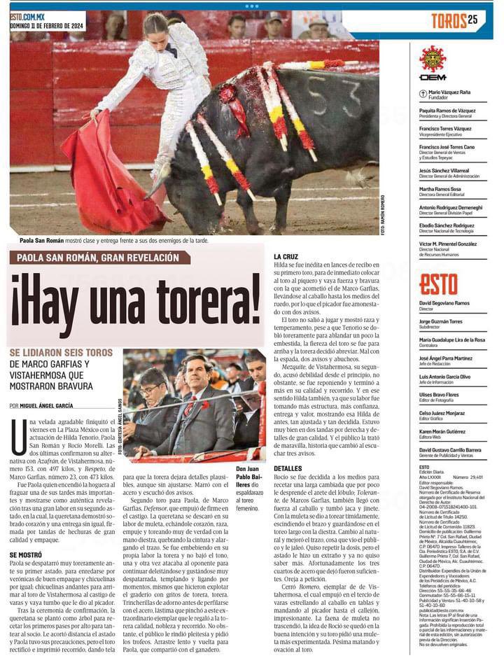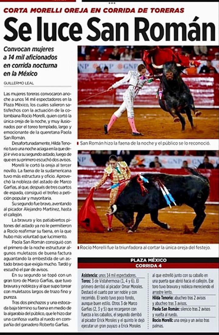 Hilda Tenorio, Paola San Román y Rocío Morelli que confirma su alternativa, tres grandiosas toreras para este viernes en La México. Toros de Vistahermosa y Marco Garfias
