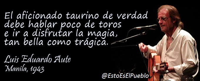 El aficionado taurino de verdad debe hablar poco de toros, e ir a disfrutar la magia tan bella y a veces trágica". Luis Eduardo Aute.