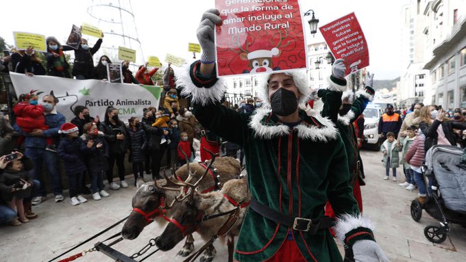 Una docena de activistas del pacma ha conseguido parar la cabalgata de papá noel que llegaba con renos auténticos a Oviedo. Una docena. En Oviedo el pacma ¿cuántos votos tiene? de ahí su comportamiento violento interrumpiendo una actividad para hacerse notar. Es violento porque han forzado a organizadores y público -miles- a someterse a su discurso durante unos minutos.