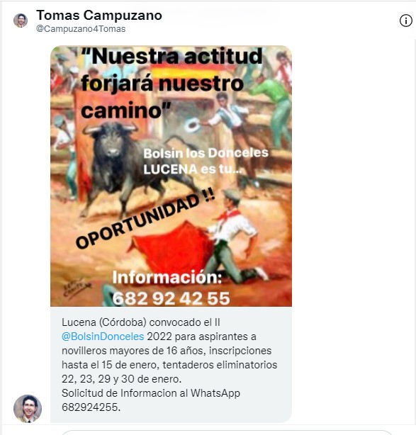 Lucena (Córdoba) convocado el II @BolsinDonceles 2022 para aspirantes a novilleros mayores de 16 años, inscripciones hasta el 15 de enero,