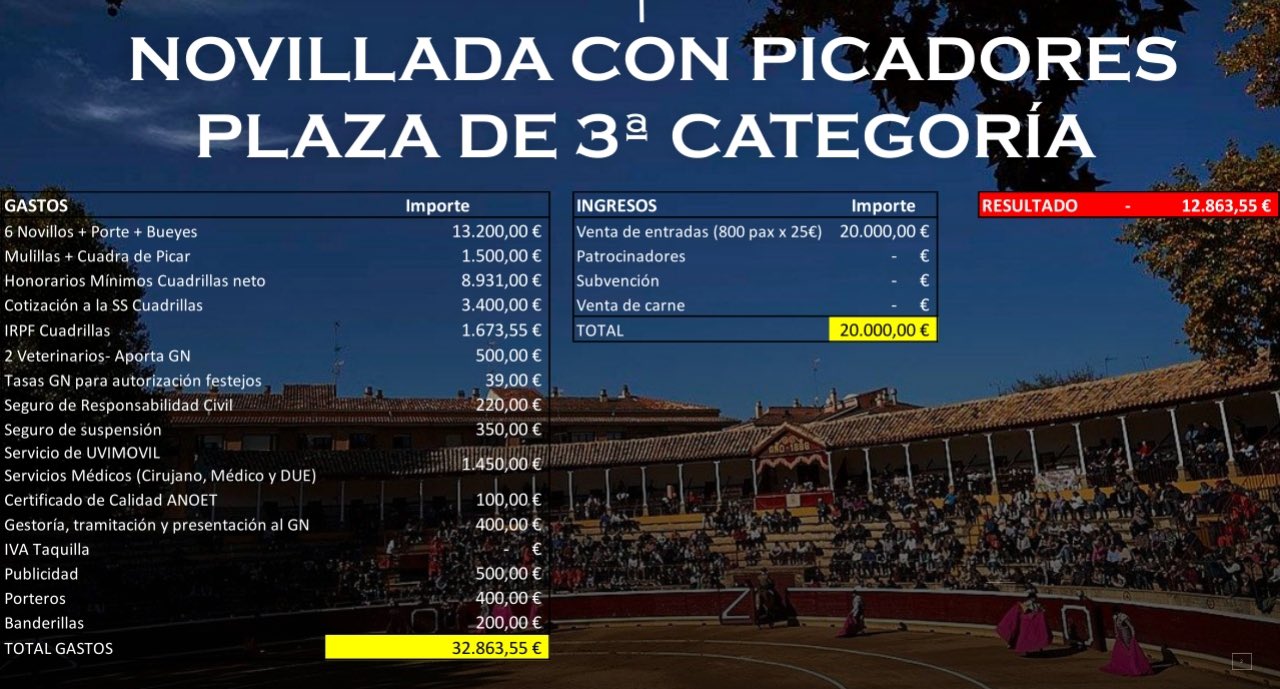 Los gastos de organizar una novillada superan los 50.000 euros teniendo los toros ¡regalados! pues en qué se van los dineros, que hay mucho parné en 50.000 euros??