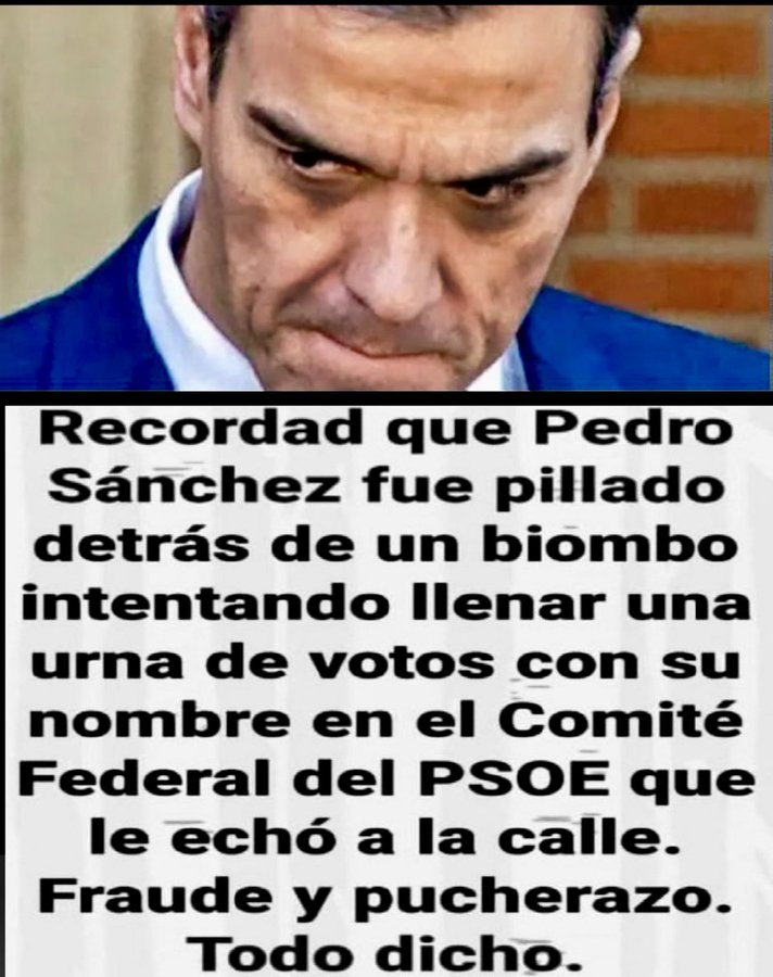 Sánchez tiene experiencia, ya le pillaron con una urna falsa una dando un "golpe" dentro del PSOE. Aquel "Pucherazo en el Comité Federal del PSOE" supuso la expulsión del "pirata" del partido. Sánchez aprovechó esos meses para tejer una trama de partidarios escogiendo lo mejor de cada "casa del pueblo" desde Abalos (sin ningún escrúpulo) hasta la asturiana Adriana Lastra (sin formación alguna) por citar solo dos.