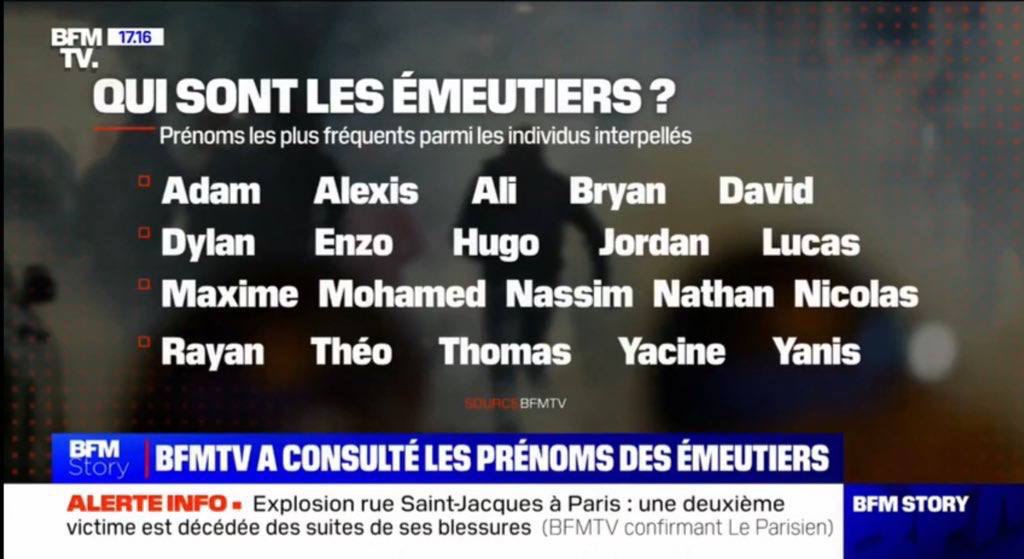 En Francia han sacado los nombres más comunes entre los detenidos por los disturbios de los últimos días: