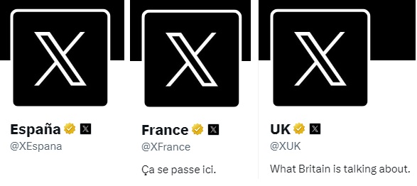 Y una cosa ás que he cazado os traigo, las banderas de twitter. Ya sabéis la polémica que hubo. Ahora Elon Musk ha cambiado, y las banderas han sido sustituidas por un fondo negro y la X de la empresa. Mejor que poner la bandera de España como bandera roja, sí; pero las banderas son bonitas. Aquí lo dejo
