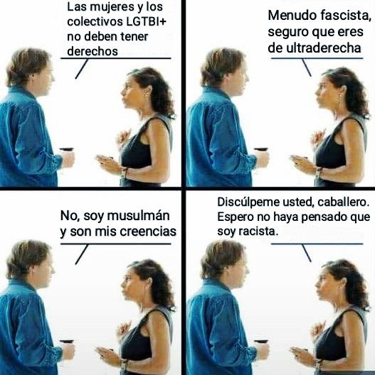 Y fueron a la mezquita... y en la mezquita dijeron que no querían absolutamente nada de esos colectivos. Y se marcharon, y nadie dijo ni media palabrita a pesar de ser una discriminación que en cualquier otro lado supone multazo.