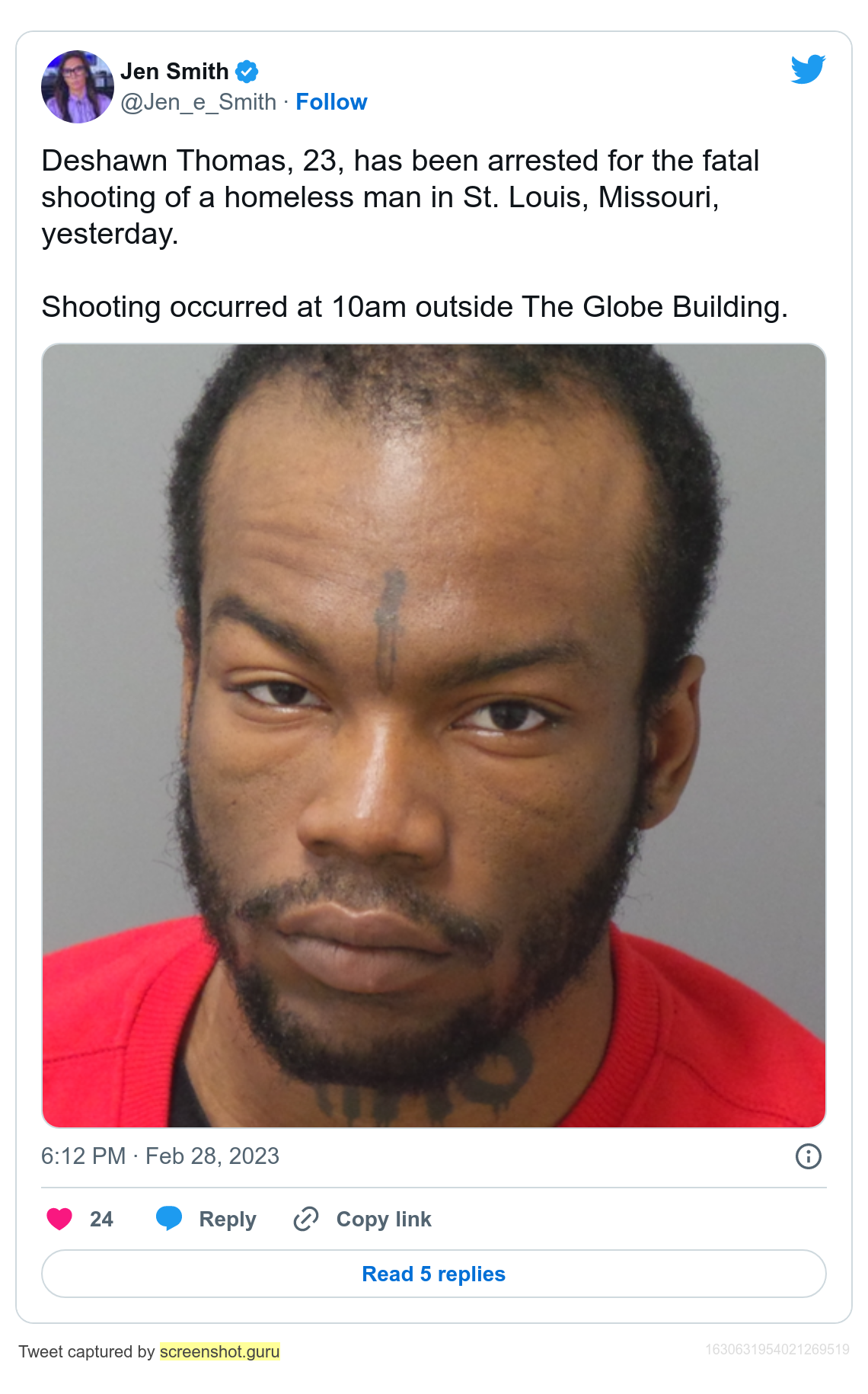 A sangre fría. Este es Deshawn Thomas, el sujeto que disparó a un sin techo: