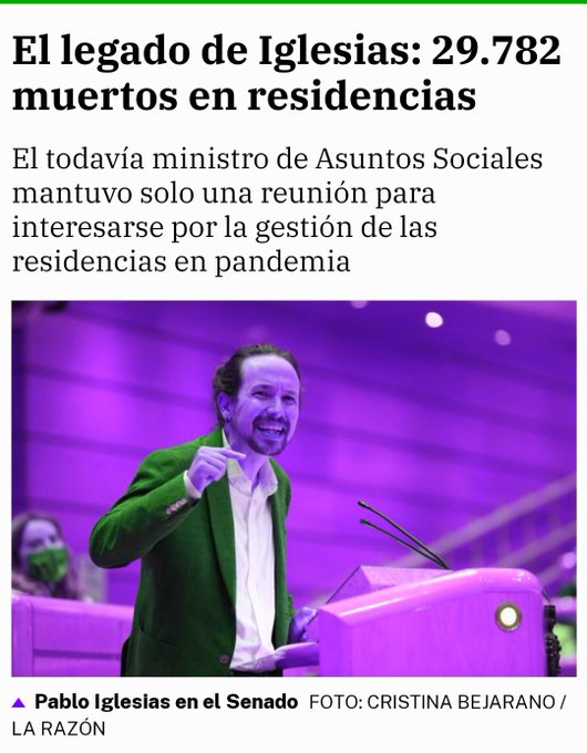 Re: Pablo Iglesias fue el máximo responsable de las residencias de ancianos en la pandemia