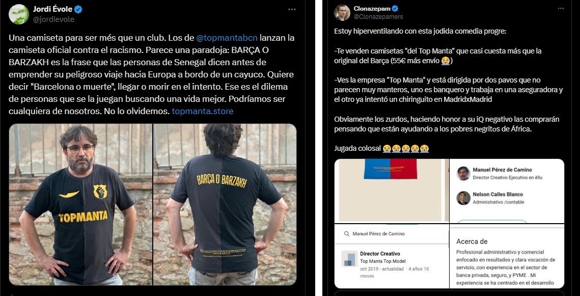 Jordi Évole se ha convertido en el rostro que vende una camiseta (55 euros) que dice quieren hacer la camiseta "oficial" de la venta ilegal en las calles de Barcelona, el topmanta. Esto debéis saber: