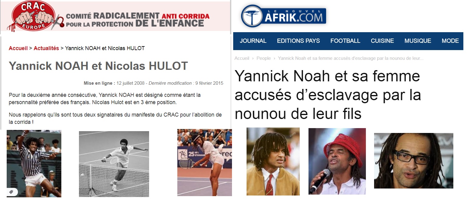 Yannick Noah fue un campeón de tenis y durante muchos años una figura icónica en el país galo: elegancia, moda, saber estar... todo muy chic. Y antitaurino. Anticorrida en Francia. Su niñera le acusó de esclavismo.