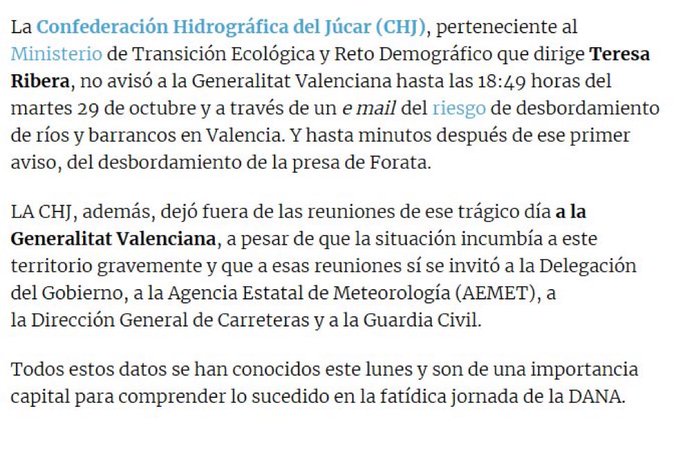 Re: Negligencia en la DANA: 217 muertos y la Generalitat sin alertas a tiempo