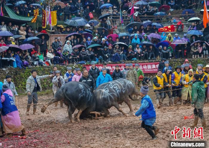 La lucha de toros es una competición muy popular en muchos países de la tierra. Esta fotografía corresponde a una competición popular de tauromaquia en la localidad de Gaozeng, en el condado de Congjiang, en la prefectura autónoma de Miao y Dong de Qiandongnan, en la provincia de Guizhou, suroeste de China. Un total de 26 toros de aldeas vecinas participaron en la competición, atrayendo a numerosos turistas y vecinos que acudieron como espectadores.