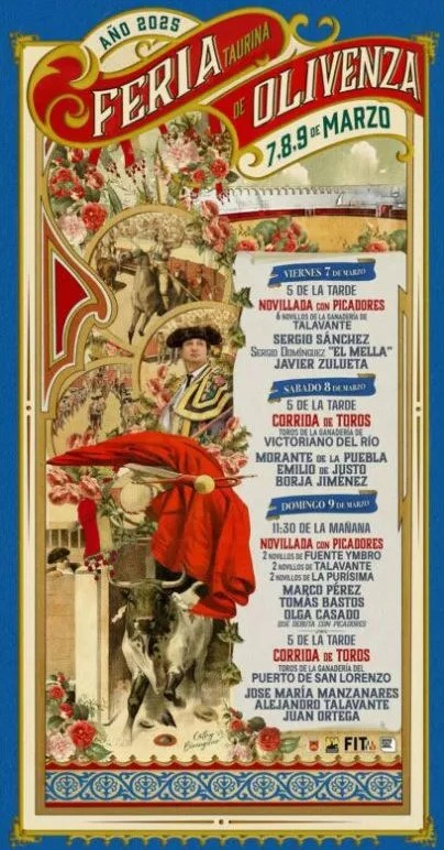 La Feria del Toro de Olivenza 2025, programada del 7 al 9 de marzo, ha revelado sus carteles oficiales, destacando la reaparición de Morante de la Puebla y el debut con picadores de la novillera Olga Casado.