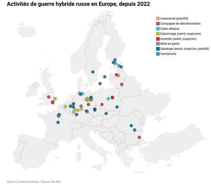 Incidentes de guerra híbrida en Europa realizados por agentes rusos desde el año 2022