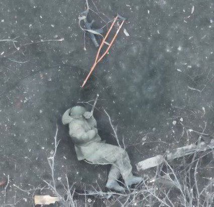 En la Tercera Guerra Mundial no participará Rusia. Esta imagen es impresionante por la angustia que causa: un soldado ruso en muletas enviado con un fusil para asaltar una posición defendida por Ucrania.