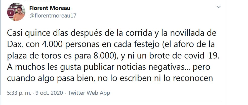 La afición se portó de manera ejemplar en las corridas y en las novilladas de la reconstrucción. Y en Francia, lo mismo. Somos un ejemplo para todos los espectáculos al aire libre. CERO CONTAGIOS ADEMÁS.