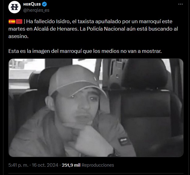 Han asesinado a un taxista en Alcalá de Henares, la policía busca a un mejor de "origen marroquí" y esta es la imagen que se ha difundido. La violencia sigue creciendo, especialmente contra gente trabajadora.