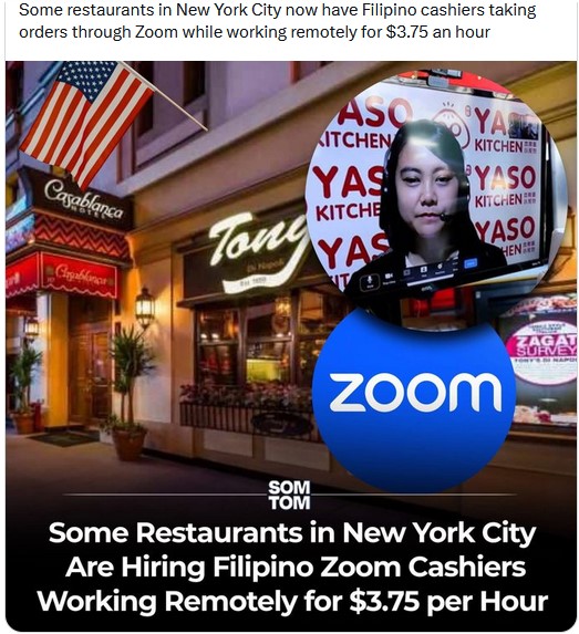 Algunos restaurantes de la ciudad de Nueva York tienen ahora cajeros filipinos que toman pedidos por Zoom mientras trabajan a distancia por 3,75 dólares la hora. Los tiempos cambian a gran velocidad. Y hay que adaptarse.