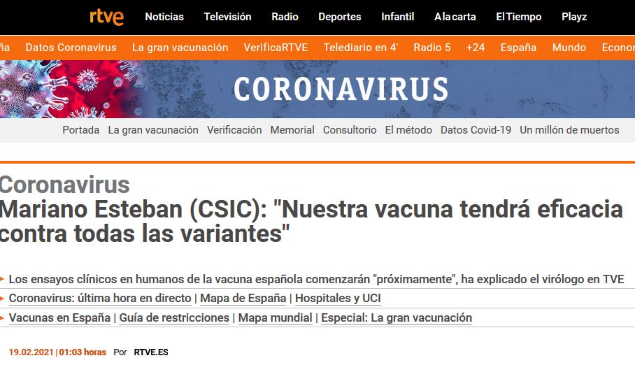 La investigación de la vacuna española sigue adelante, según declaran los investigadores del CSIC será adecuada para todas las variantes y estara disponible para su empleo masivo a partir del verano.