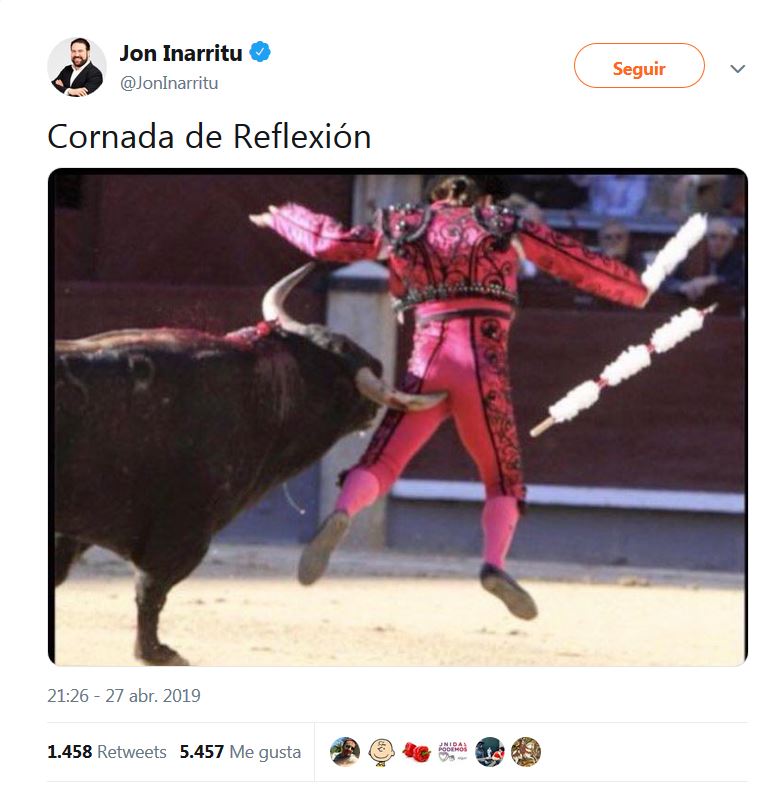 Estos que encabeza Jon Iñarritu y su partido Bildu son los hijos y nietos de aquellos que se rindieron a Franco. Y esa huella, ese rastro antidemócratico asoma en no pocas ocasiones: por ejemplo, en el desprecio a las minorías que se observa en la utilización burlesca de esa fotografía -probablemente robada y sin citar autor- que no muestra ningún respeto por la sexualidad homosexual, al contrario, como hemos dicho.