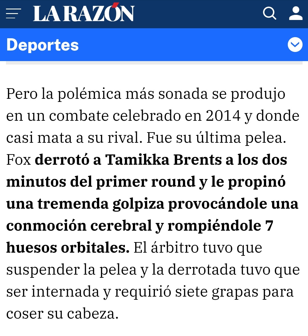 Aquí tenéis un ejemplo de un deporte de combate en el que una mujer "con pene" se enfrentó a la campeona, mujer "con vulva" a la que dió un paliza y machacó en dos minutos.