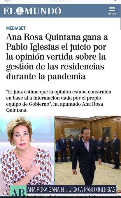 Otro juez ratifica esta opinión de Ana Rosa Quintana y condena en costas a Pablo Iglesias.