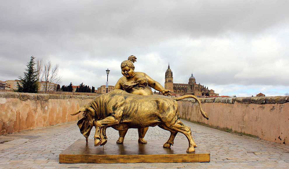 'Verónica, pase de amor' de Xu Hongfei, conmemora el año del Toro en el calendario chino. Esta obra quedará expuesta durante las próximas semanas en la plaza Mayor de Salamanca, ciudad a la que será donada posteriormente. Es la tercera exposición consecutiva del artista en las calles de Salamanca.