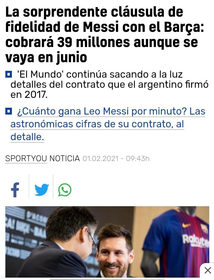 39 millones que se lleva Messi "por fidelidad". Sí, 39 millones de euros. Y lo tenía escrito en el contrato. Laporta alargó la agonía de la negociación con Messi hasta que esos 39 millones "maduraron". ¡¡¡QUÉ CRACK!!!