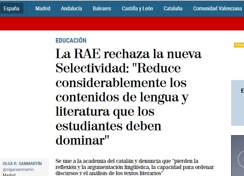 La RAE rechaza la nueva Selectividad: "Reduce considerablemente los contenidos de lengua y literatura que los estudiantes deben dominar"