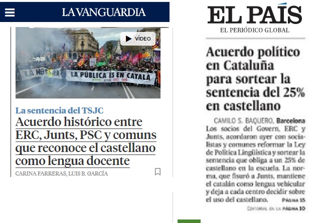 Acuerdo histórico entre ERC, Juntss, PSC y comuns que reconoce el castellano como lengua docente