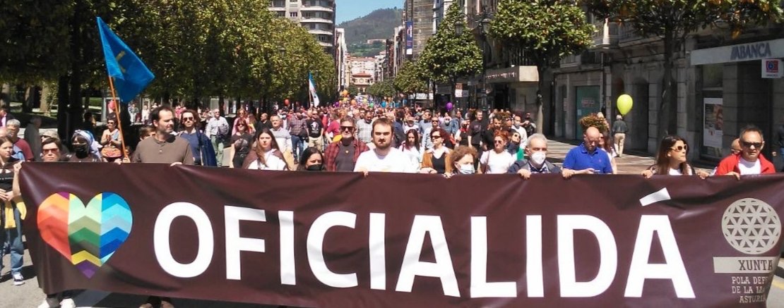 Una manifestación exigiendo que el "asturianu" sea "lengua" oficial en Asturias... el camino al chiringuitu pasa por encabezar esas manifestaciones.