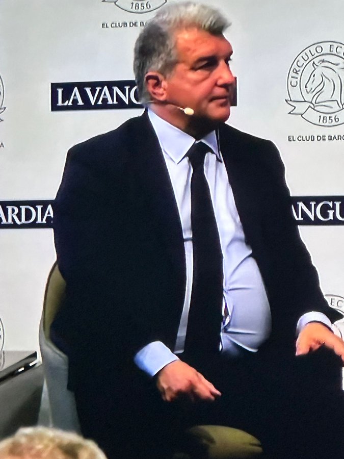 Este es Joan Laporta, Lapanza no; no Sancho Panza aunque la panza el sale por los botones de la camisa. Que el Barcelona no ha comprado árbitros.