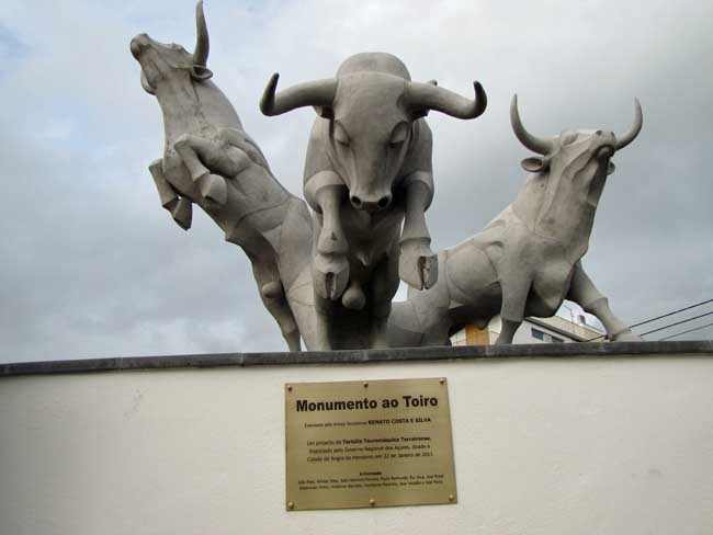 El 22 de enero del año 2011 quedó inaugurado uno de los monumentos más originales dedicados al toro y por extensión al mundo de la tauromaquia. Se trata de un grupo escultórico de gran tamaño, que se eleva 11 metros desde el suelo, y queda situado con vistas a la plaza de toros de de Angra do Heroismo, en Isla Terceira, del archipiélago de las Azores: la escultura está compuesta por tres toros bravos. Es la escultura taurina más grande del mundo. Su autor es Renato Costa e Silva.