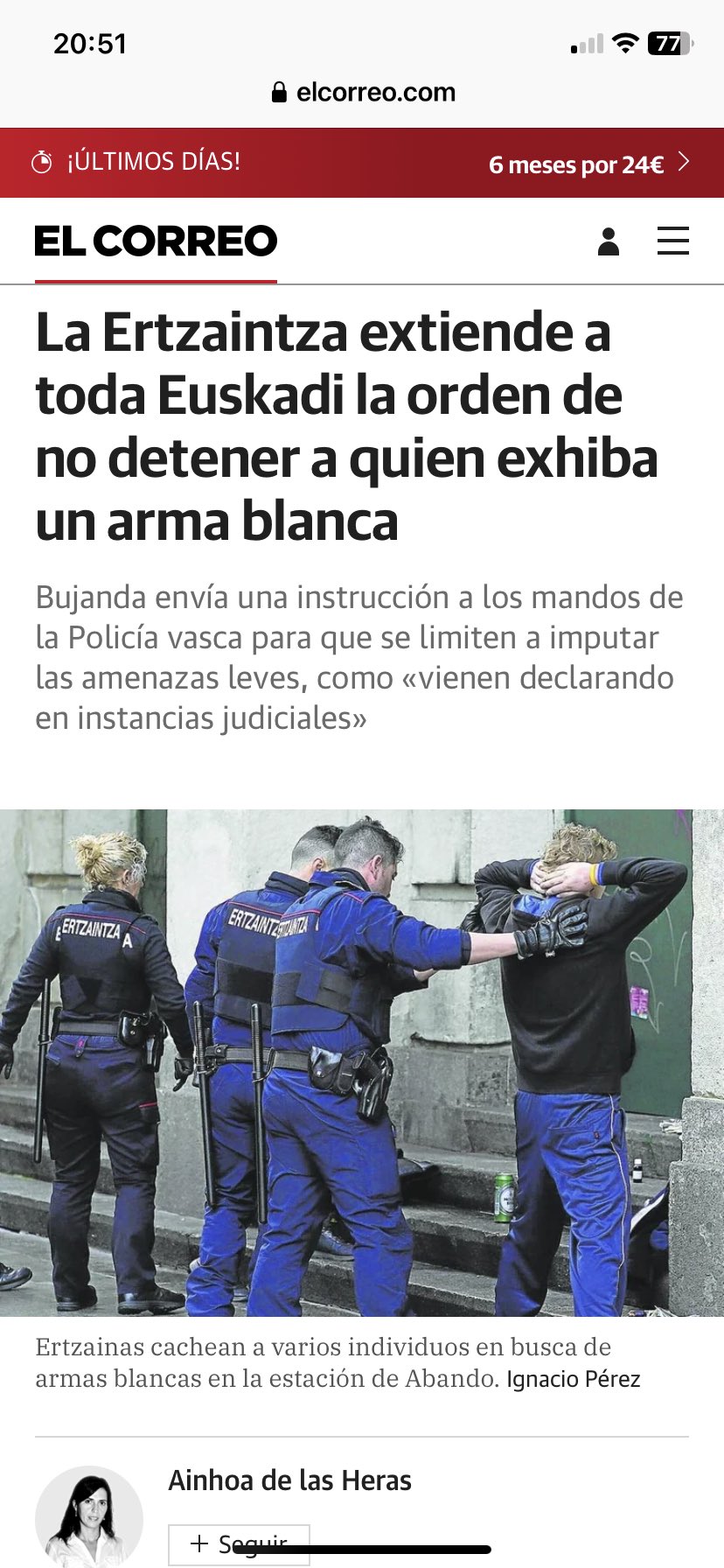 Re: La Ertzaintza deja de arrestar en Álava a quienes amenazan con arma blanca al ser un «delito leve»