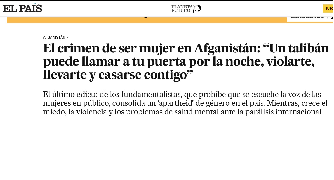Y esto sucede en Afganistán... sin que ninguna organización feminista internacional levante su voz para condenar estos crímenes contra la humanidad.
