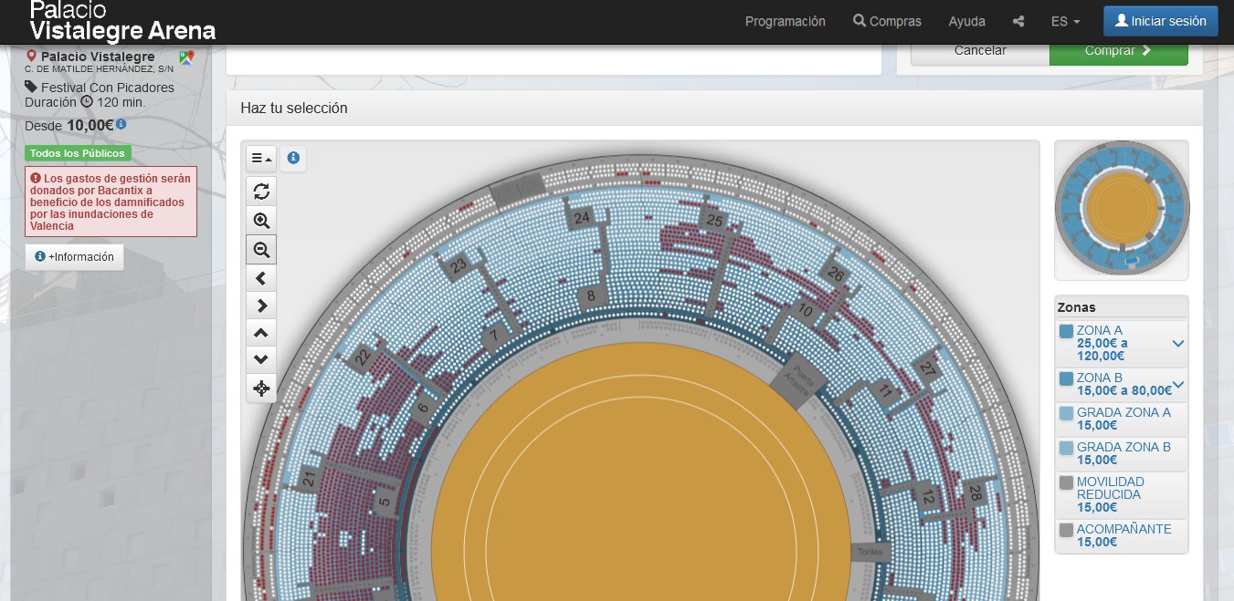 Las entradas se pueden sacar en Bacantix.com, torosvistalegre.com y en las taquillas físicas de la calle Alejandro González número 5, cerca de Ventas, y en la propia plaza de Vistalegre los días 28, 29 y 30 de noviembre y la misma fecha del festival.