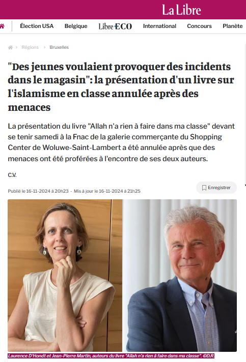 Fnac ha cancelado la presentación de un libro por las quejas de islamistas e izquierdistas ¿de qué va el libro? Dejó el título: "Allah n'a rien à faire dans ma classe" de Laurence D'Hondt y Jean-Pierre Martin. "Alá no tiene nada que hacer en mi aula!
