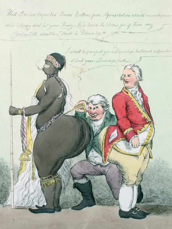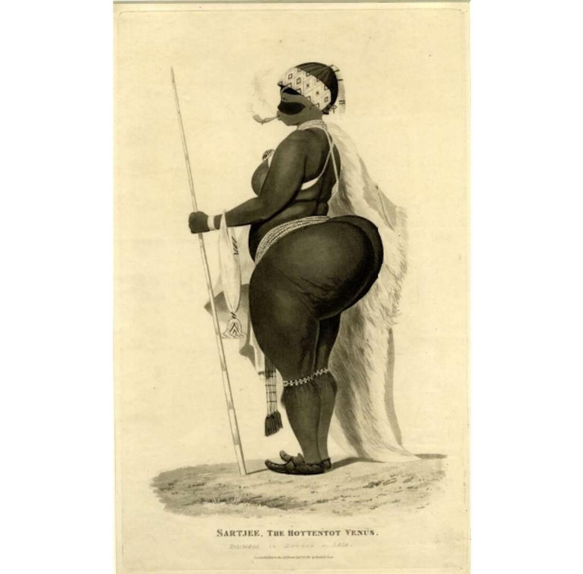 La acumulación de grasa en los glúteos es una enfermedad llamada esteatopigia que afectaba a Sara Baartmann desde su infancia. Había nacido en los alrededores de El Cabo hacia 1789 y fue llevada como esclava a Londres para su exhibición privada y en circos con el nombre de la Venus de Hotentote o Saartjie Baartman. Además de esteatopigia, su órgano sexual también era diferente, con unos labios menores mayores de lo normal. En Londres estas exhibiciones generaron alguna controversia y llegaron a un juicio en el que se debatió si Baartman participaba voluntariamente o si era víctima de explotación. Aunque el tribunal concluyó que su participación era voluntaria, las circunstancias de su traslado y exhibición sugieren lo contrario. En septiembre de 1814, Baartman fue llevada a París por Henry Taylor, quien posteriormente la volvió a vender a Jean Riaux, un domador de fieras. En la capital francesa, continuó siendo exhibida, esta vez en el Palais Royal, donde las condiciones eran aún más opresivas.