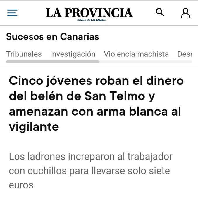 Canarias es un periódico de sucesos por los muchos "casos" que aparecen a diario relacionados con la "invasión" de ilegales gracias a Cruz Roja y los naves de ayuda a la "navegación". Ya me entendéis ¿no?