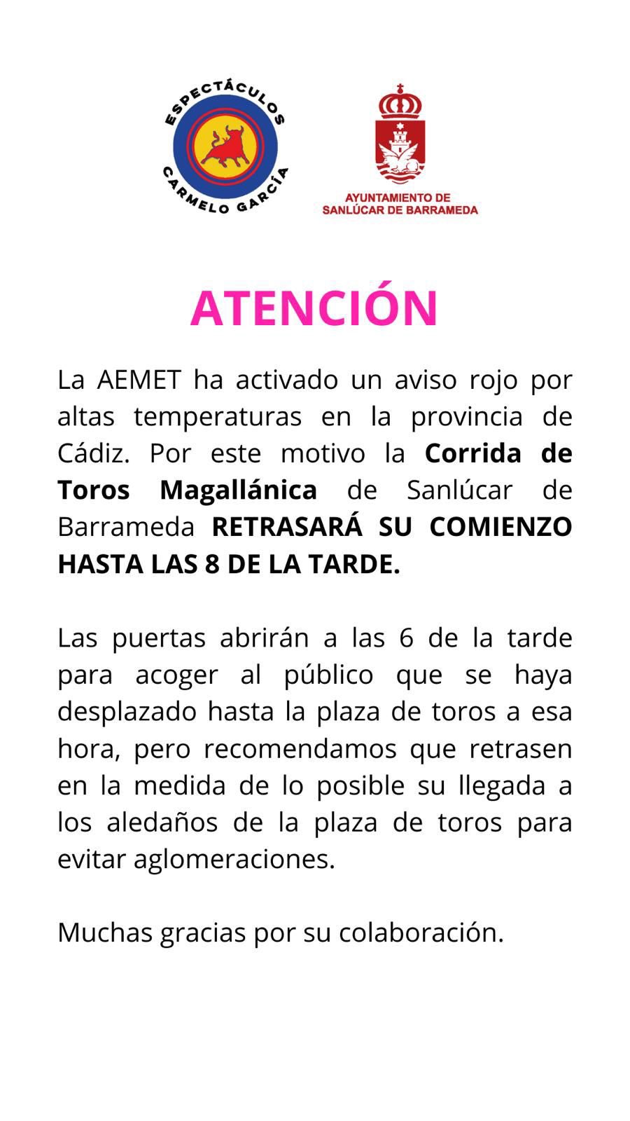 Mucho calor en Cádiz, y para mitigar los efectos, la corrida empezará más tarde, a las 20.00 horas. Cosas del verano.