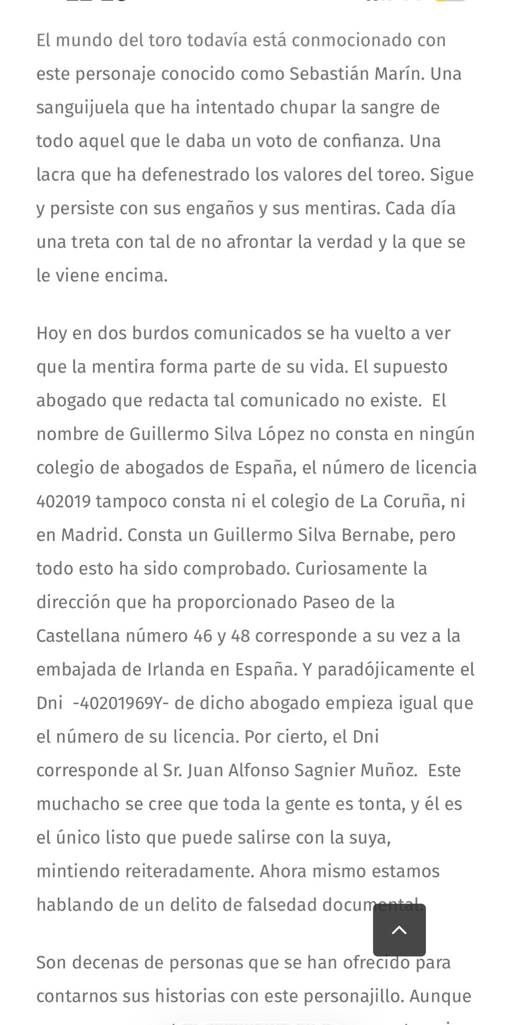 Y este parece que es un comunicado de ¿torero? ¿fantasma? en el que se le ven cortas las patas, pillado en demasiadas mentiras.