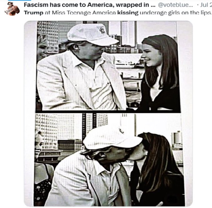 Este es Donald Trump que en la época sería millonario y sin cargo público pero una figura conocida. En la foto aparece con una niña Miss Teenager America y aprovecha Trump para plantar a la niña un beso en los labios. Peor que desagradable, Trump: vomitivo