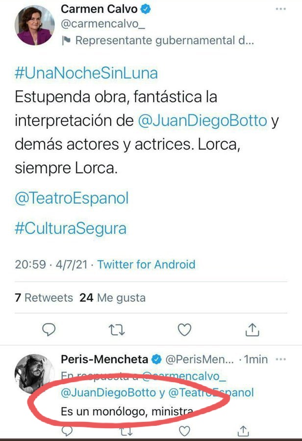 ¿Puede superarse a sí misma la vicepresidenta? sin mayor complicación, lean: la vicepresidenta Calvo felicita a los actores y a las actrices.... ¡de un monólogo!