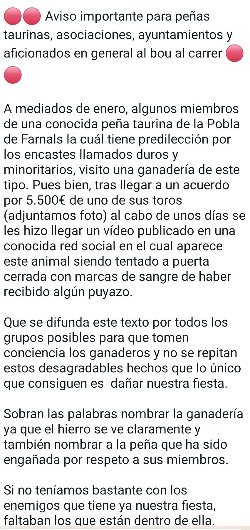 Una conocida peña taurina de la Pobla de Farnals... pagó 5.500 euros por un toro, y qué pasó?