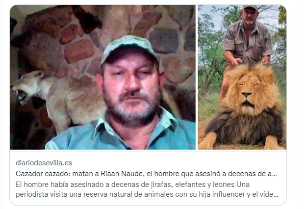 Cazador, cazado; matan a Riaan Naude asesino de animales salvajes