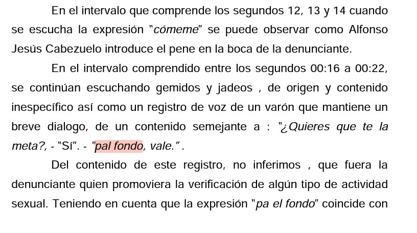 La víctima de la manada, ante la pregunta de El Prenda, "¿quieres que te la meta?" contestó: "Sí. Hasta el fondo"