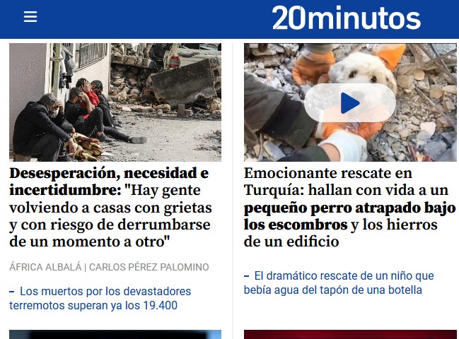 Para 20Minutos el intento de rescate del perro es "emocionante". Para mi es emocionante la posibilidad de encontrar personas con vida. Si en los minutos de descanso una cuadrilla prefiere rescatar a un perro y no buscar una nueva víctima humana, allá ellos. Esto no lo veo emocionante.