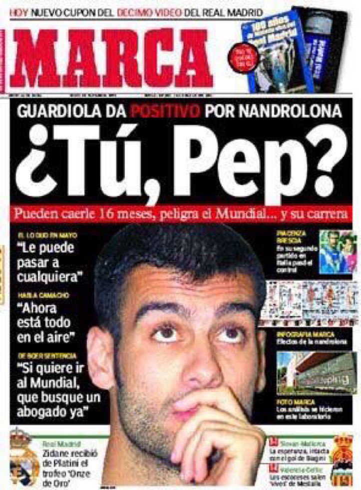 Siete meses de prisión para Guardiola en Italia en su época de jugador por dopaje.