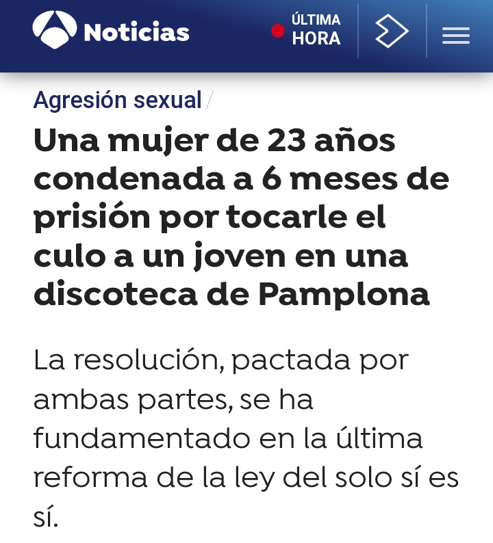 Una joven de 23 años ha aceptado una condena a seis meses de prisión por toca el culo a un hombre. Informa antena 3 de ese acuerdo extra judicial pactado entre las partes.
