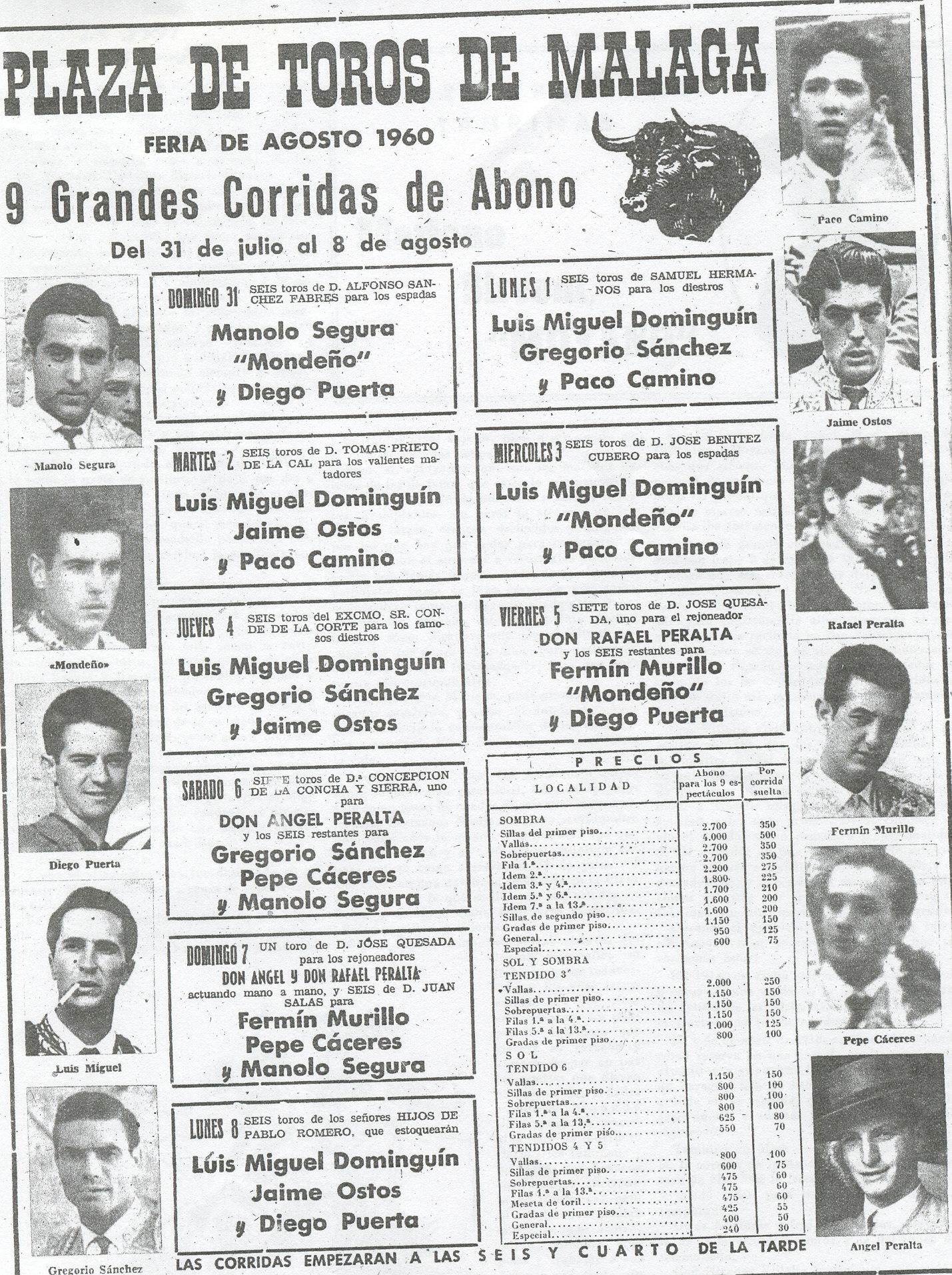 Dominguín, en el cartel, y fumando, lo nunca visto. O yo nunca he visto un cartel de toros con un torero que lleva un cigarrillo en la boca.