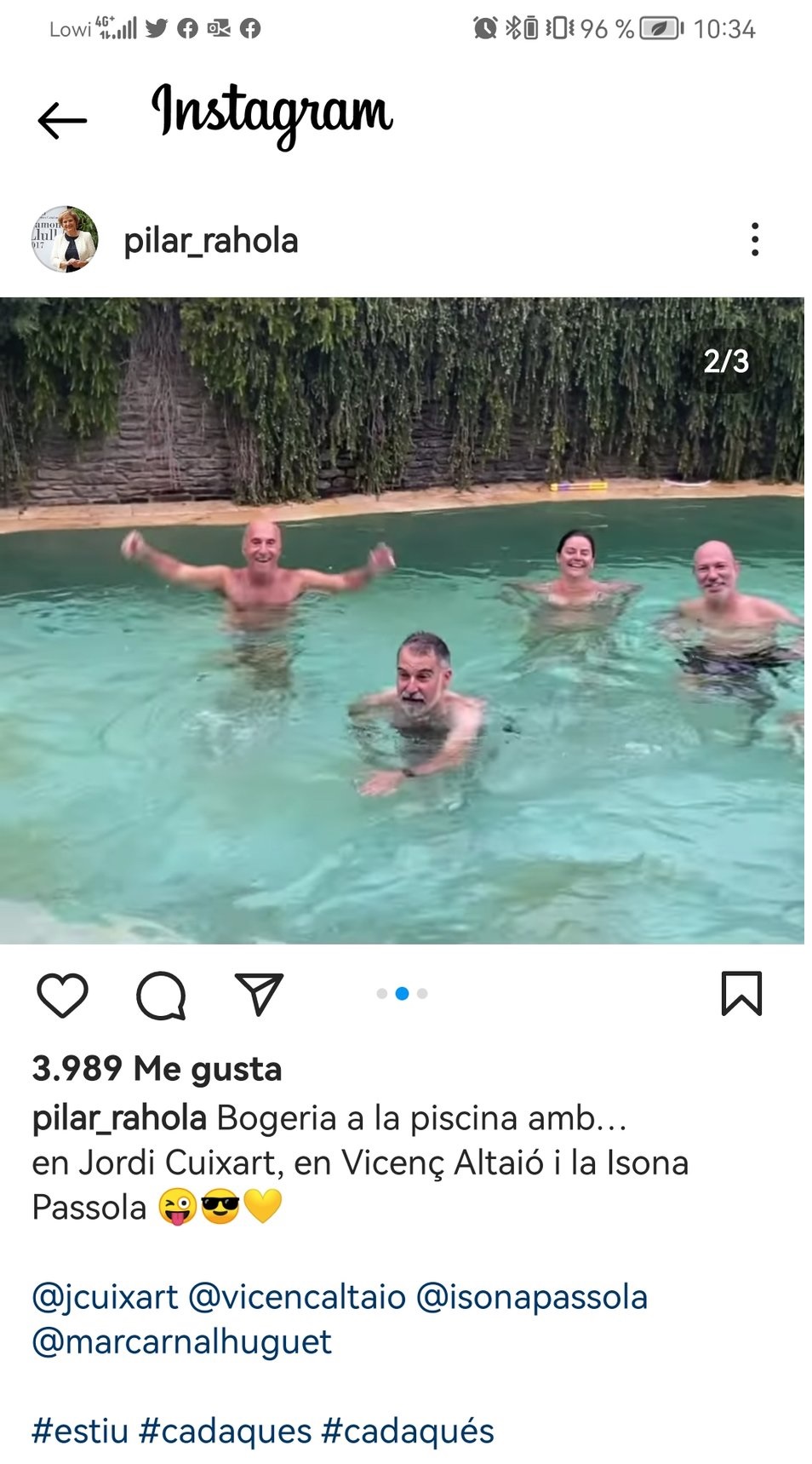 La fotografía aparece en los días de racionamiento de agua para los catalanes curritos: a sufrir toca. Los líderes lazis deben relajarse porque la lucha va a ser larga, de muchos meses, muchos. ¿aprobáis el nuevo modelo lazi de bañador para la piscina de rahola?